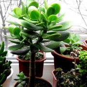 - Rundbladet. Den vokser som en epifyt. Bladene er tykke, runde, saftige. Forgrenede brune eller burgunder skudd. Petioles er korte.