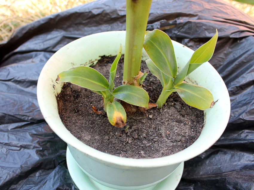 Den neste beholderen for transplantasjon skal være 3-4 centimeter større enn den forrige. Når du planter om en banan, er det nødvendig å utdype den for dannelsen av utilsiktede røtter. Modne planter krever fornyelse av matjorden. Det er bedre å transplantere planten ved omladningsmetoden for å unngå skade på rotsystemet.