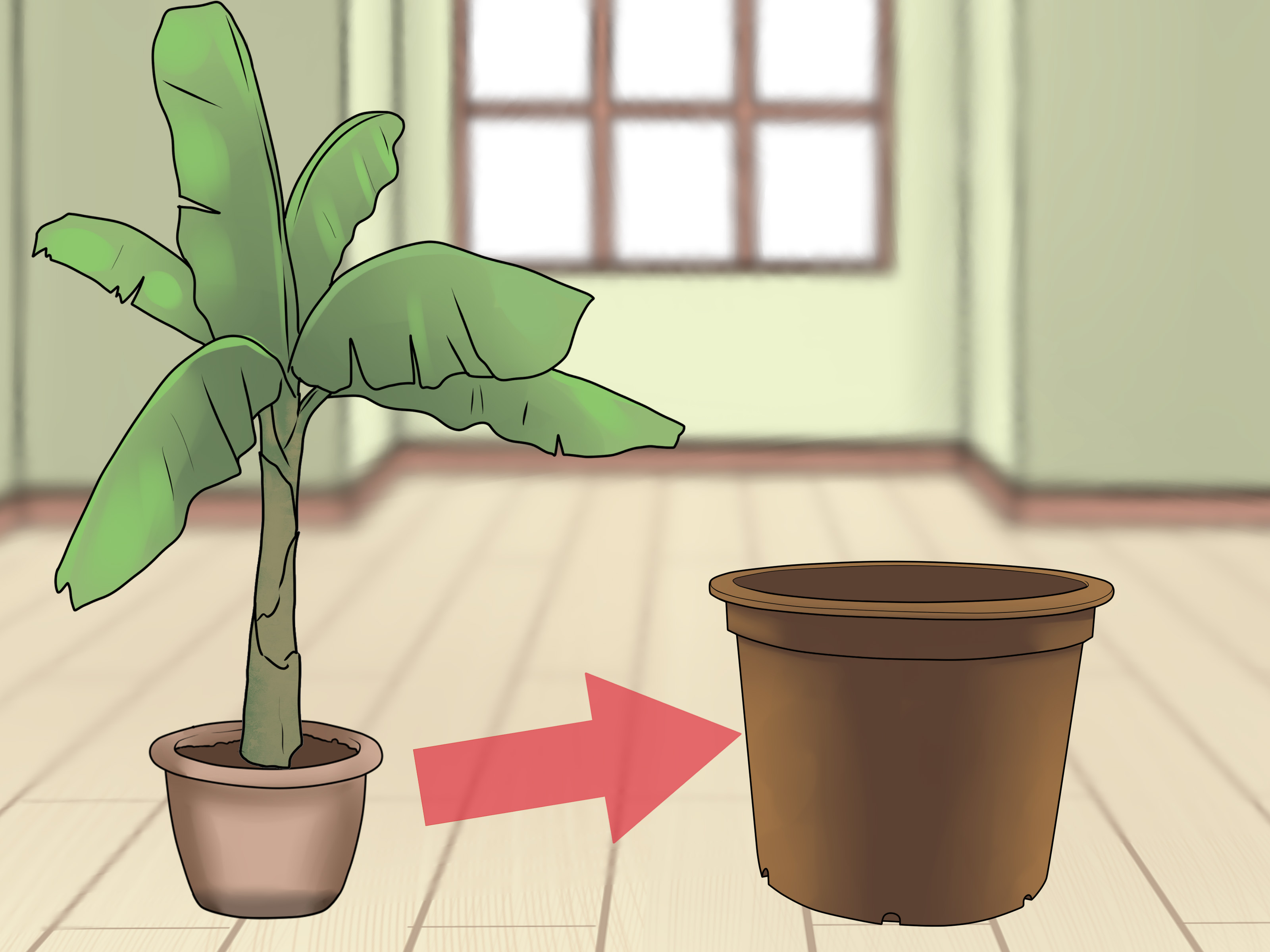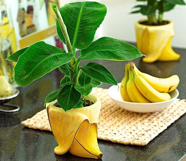 Røttene til et banantre krever plass, så potten må velges ut fra størrelsen på rotdelen. Du bør også huske at du trenger å lage hull i gryten og legge et dreneringslag på 1-2 cm.