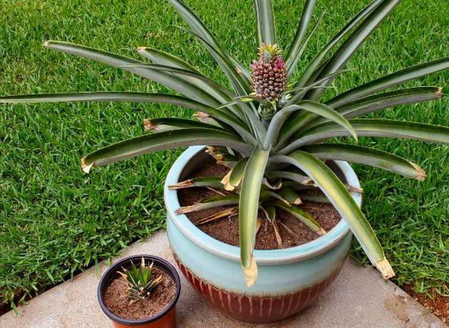 Innendørs ananas eller ananas i en gryte