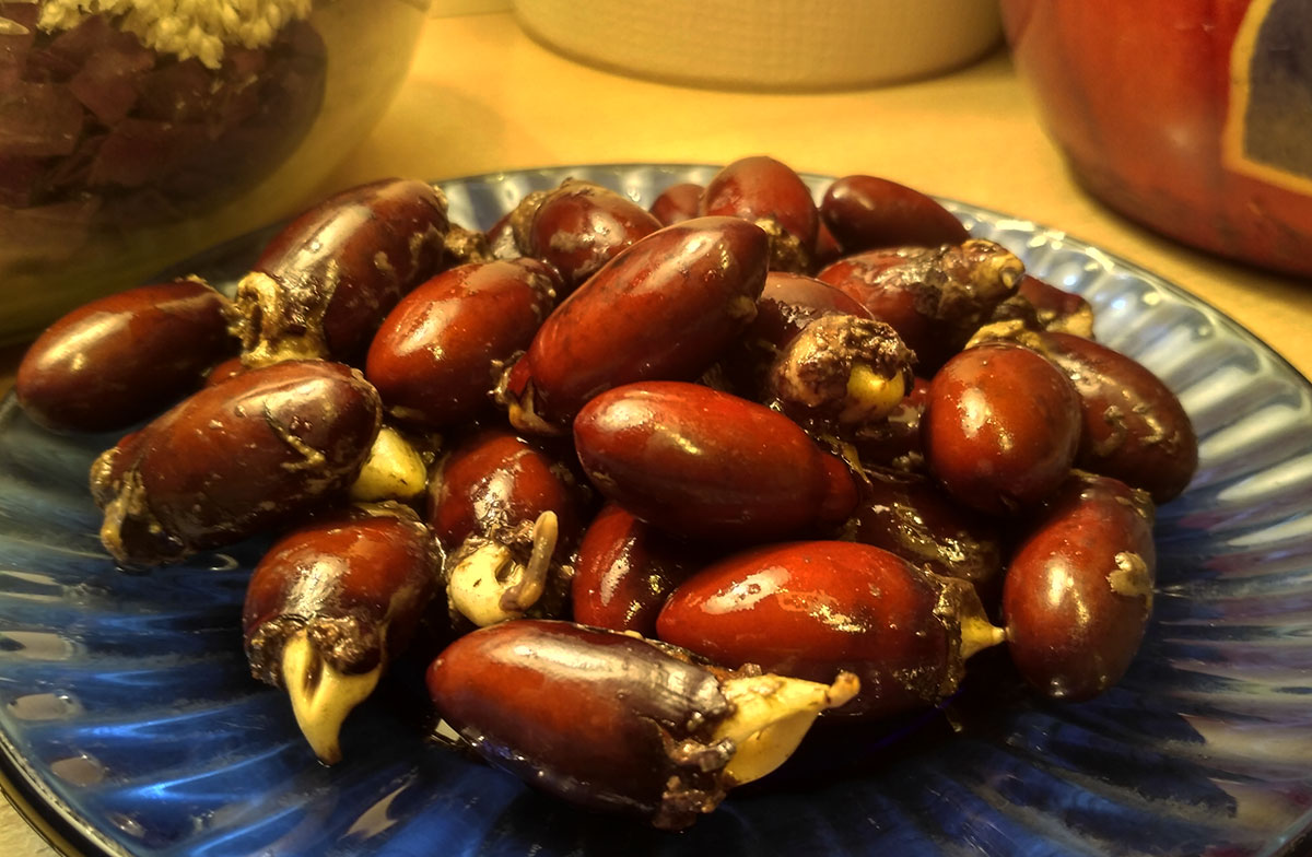 - Så snart de første røttene dukker opp, kan du plassere frøet i en gryte, ferdig fylt med drenering og næringsrik løs jord.