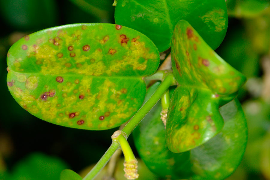 - Utseendet til skalaen insekt er indikert av grå flekker på bladverket på innsiden. Veksten til planten stopper, bladene blir gule og tørre.
