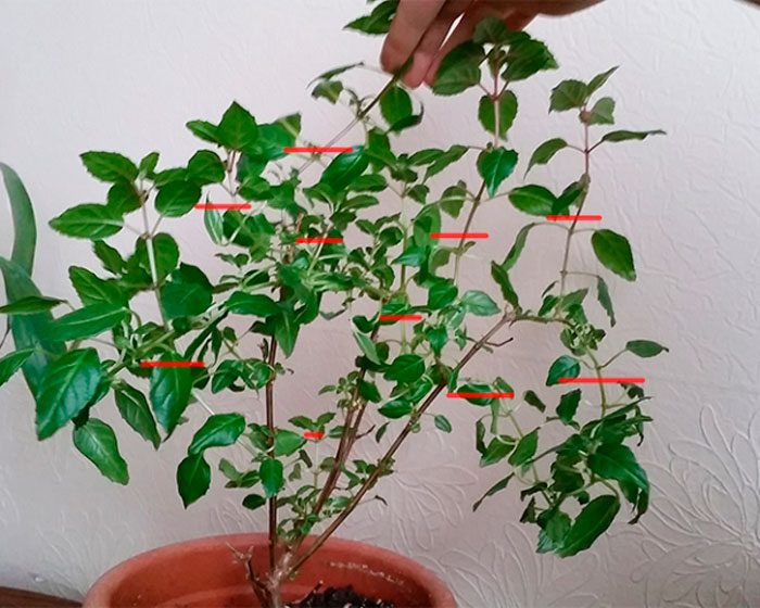 Kronen dannes ved den andre beskjæringen i januar. Etter anskaffelsen trenger planten tid til å tilpasse seg og rot. Bare når nye blader dukker opp, kan du begynne å klemme fuchsiaen.