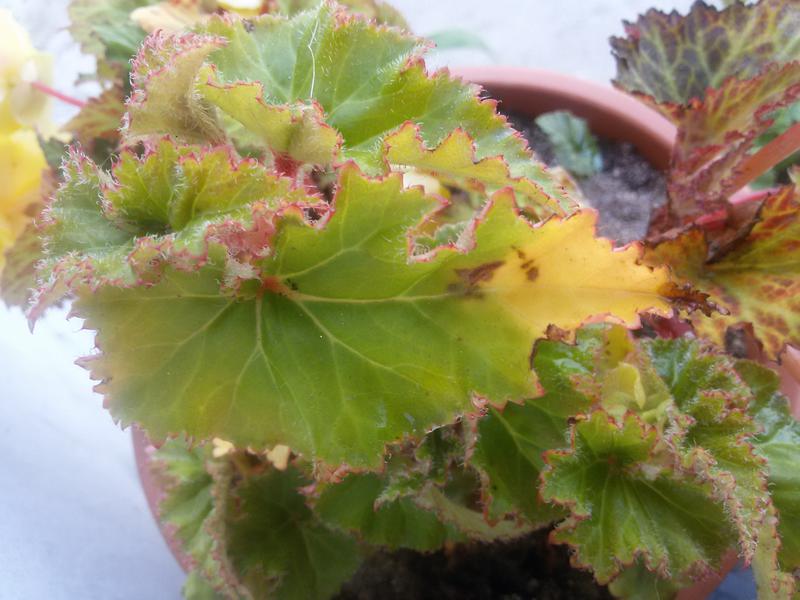 - en kraftig endring i vekstforhold. Mange gjør en stor feil når de setter en blomst på balkongen. Noen arter tåler ikke denne endringen. Begonia er en følsom plante og de skiftende forholdene gjenspeiles i løvverket. Blomsten tåler ikke når direkte sollys faller på den eller når den står i trekk;