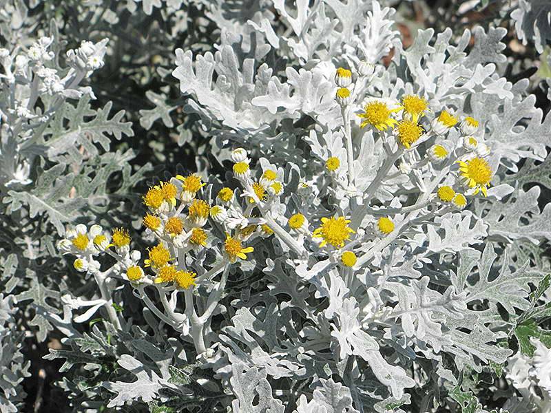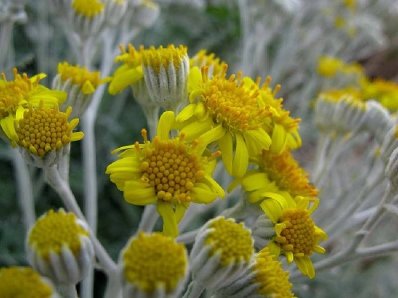 Buskene med den opprinnelige kulturen opptil 25 cm i høyden er dekorert med uvanlig gjennombrudd, litt pubesent løvverk. Cineraria blomster er gule, vokser på toppen av skuddene. Men mange gartnere kutter dem fordi de ødelegger blomsterbedets estetiske utseende.