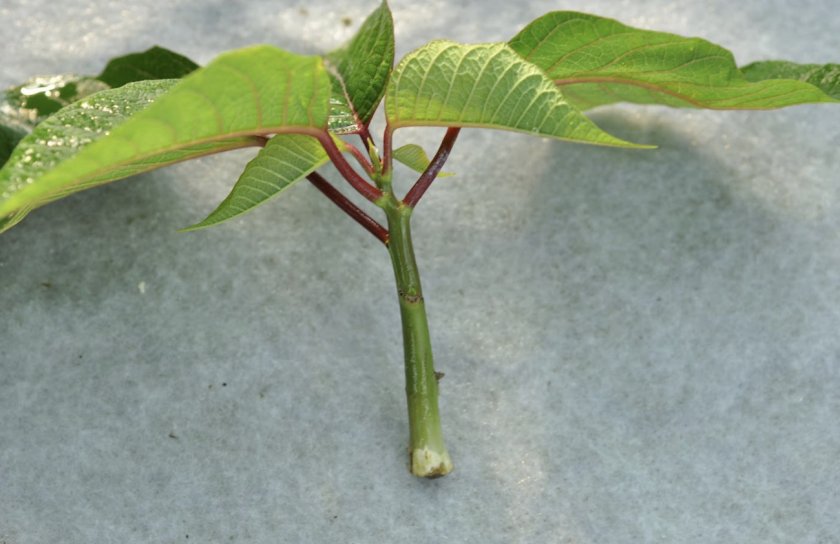 - Først kuttes en kutting (like under den siste noden fra bunnen), hvis lengde skal være ca 7 cm. Den må ha 3-6 velutviklede knopper.