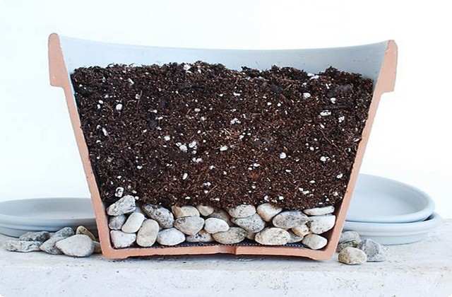Før du fyller potten med jord, må den sies for å skille store kluter, steiner, ugressrøtter. I tillegg, før du planter en busk i jordblandingen, må du desinfisere den fra mulige skadedyr ved å kalsinere, fryse eller behandle med et soppdrepende middel.