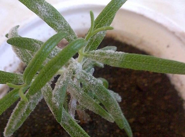 Vanning utover normen, vannlogging av jord eller mangel på riktig lufting kan provosere utviklingen av pulveraktig mugg - en farlig soppsykdom som fører til plantens død. I dette tilfellet er det nødvendig å fjerne de berørte områdene av planten, behandle planten med et soppdrepende middel og tenke om tilnærmingen til innholdet av rosmarin.