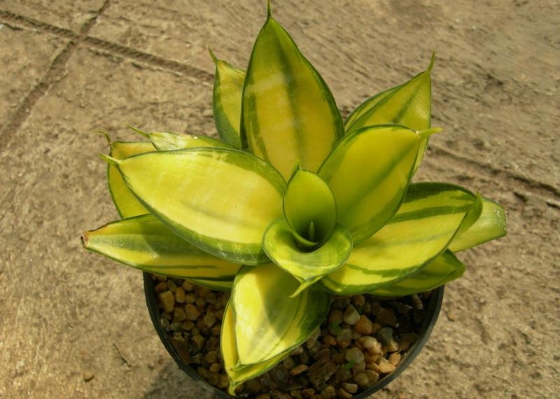Sansevieria golden får navnet sitt fra de gule bladene. Som resten av slekten er Golden Hanni sansevieria en flerårig plante. Bladene er kjøttfulle, korte. Fargemetningen på bladplaten avhenger direkte av blomstens belysning.
