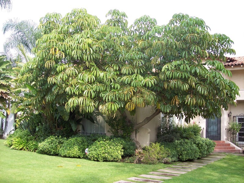 Shefler, som ficus, kan dyrkes som en stor innendørs kabalplante.