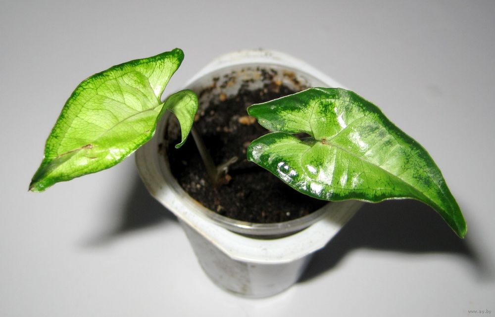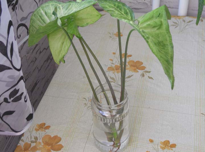 - Stiklinger. Forplantning med stiklinger av syngonium er den enkleste og raskeste måten.Plukket av toppen av skudd med minst to knopper starter veldig raskt røtter i vann eller umiddelbart i jordblanding.