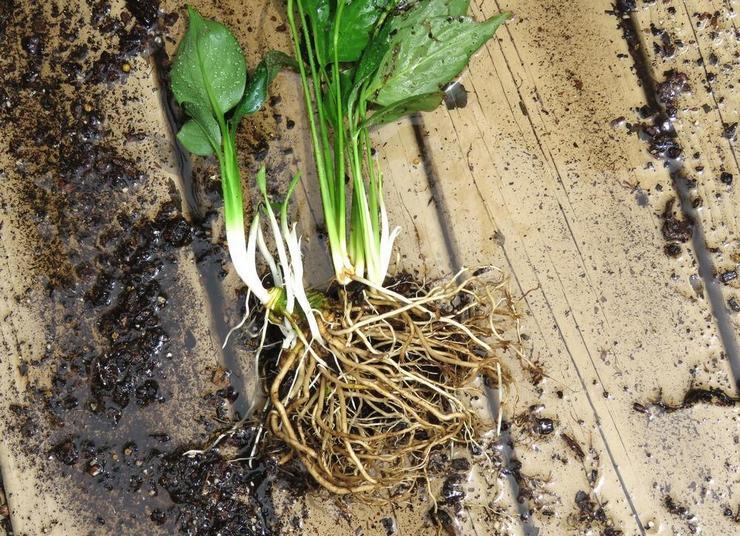 - Rett røttene forsiktig, rist av bakken. Fjern råtne røtter;