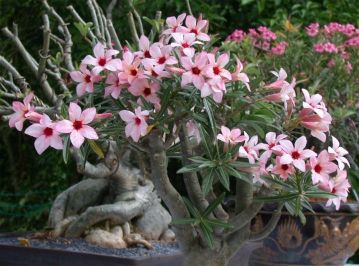 I adeniumkultur er dannelsen av caudex og veksten av rotskudd en lang prosess, men resultatet er verdt det.