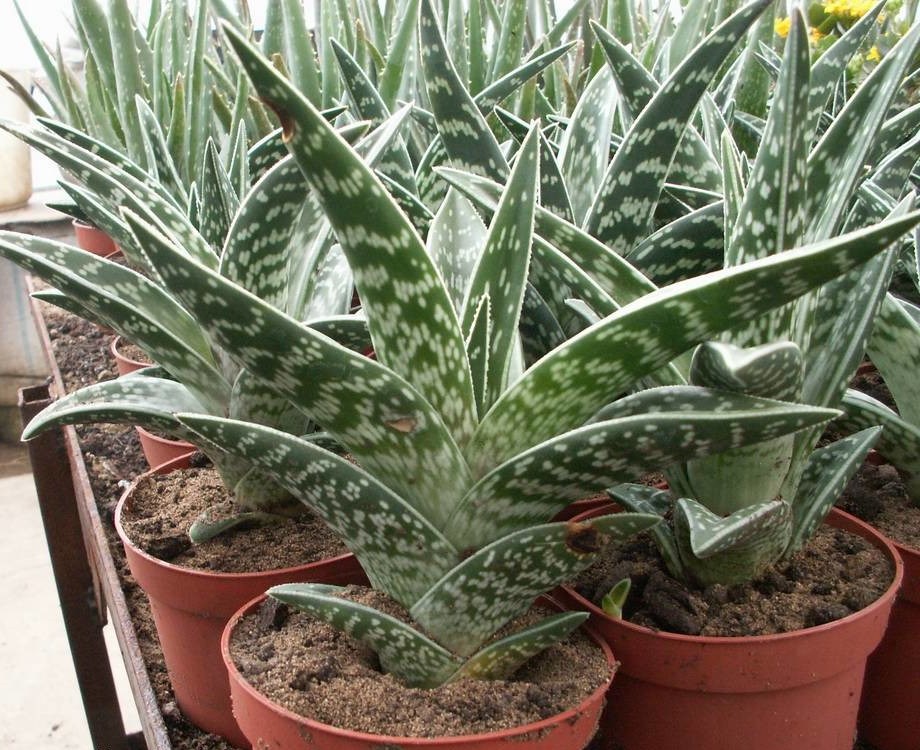 Når du velger en beholder for planting av aloe variegat, er det viktig å sikre at plantens røtter ikke hviler mot veggene. Den beste løsningen er løse potter. I vekstperioden transplanteres en busk og jord erstattes.