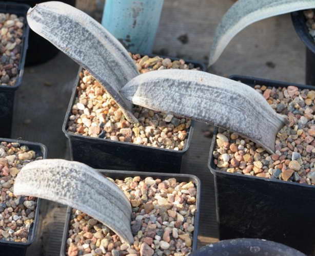 Tynne blader, når 20 cm, er dekket med mange hvite vorter, noe som gjør dem grove.