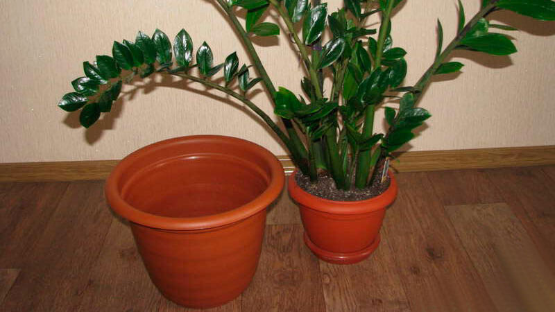 Unge zamioculcas må plantes på nytt så ofte som mulig for å gjøre det mulig for dem å vokse ordentlig, og viser sin fulle kraft og skjønnhet av mørkegrønne blanke kjøttfulle blader.