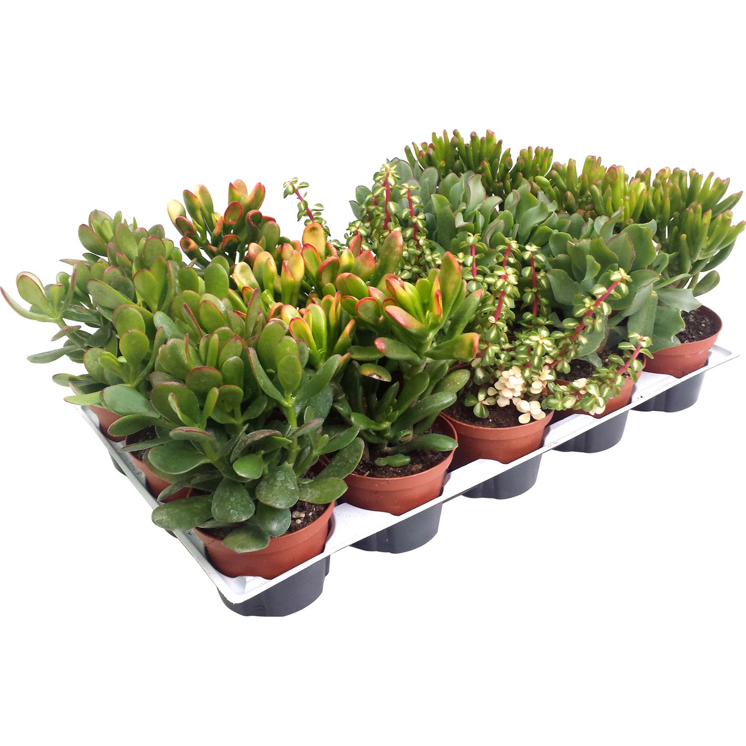 Fem varianter av Crassula-blanding som ofte dyrkes hjemme:
