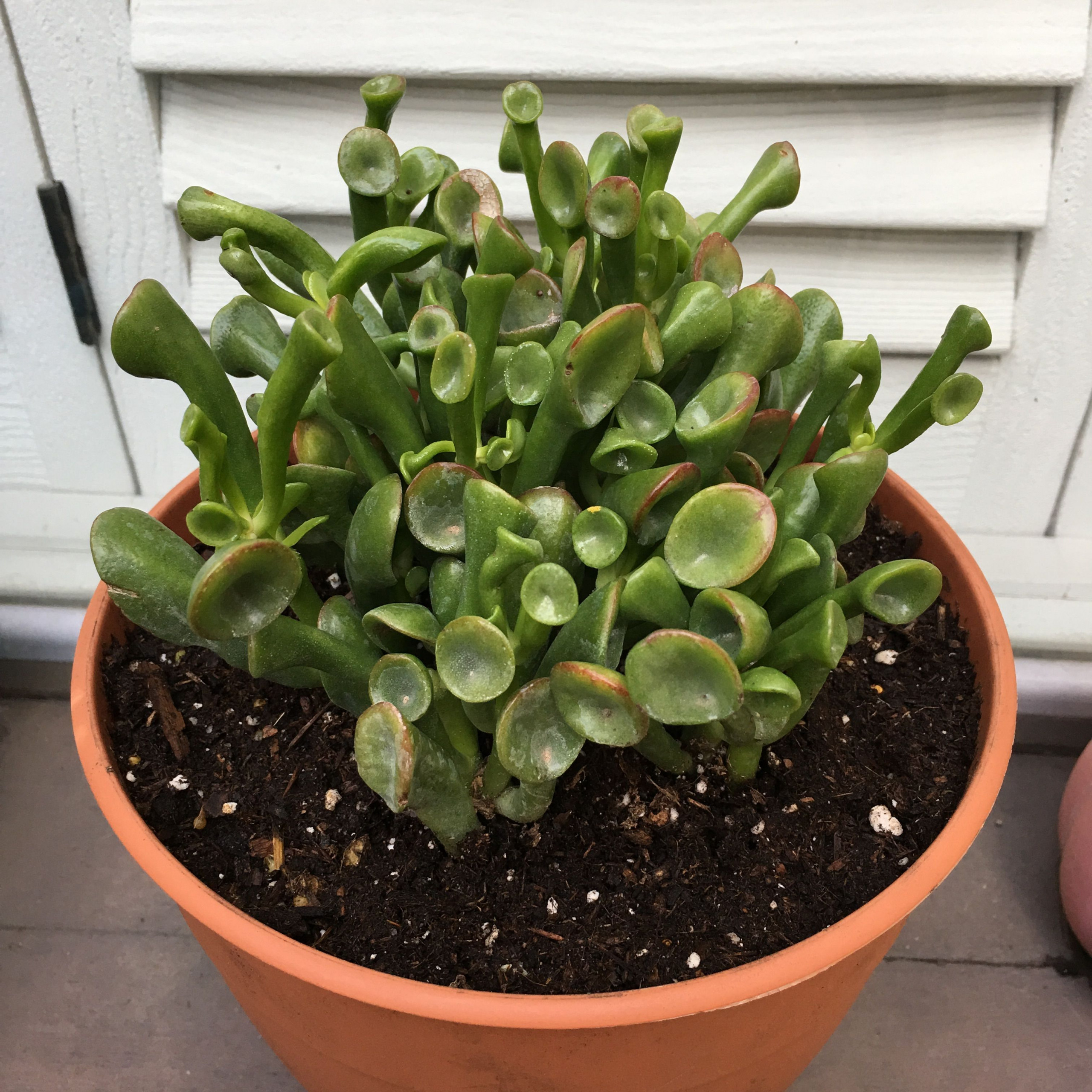 For å transplantere en voksen plante, må du velge riktig beholder. Med en kraftig koffert og en frodig krone har Crassula et lite rotsystem. Derfor trenger potten en tung, bred en slik at blomsten ikke velter.
