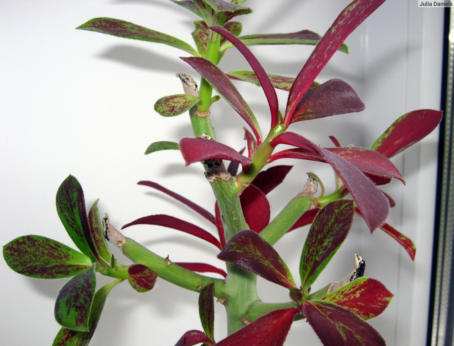 Sinadenium Granta er en fantastisk plante som kan dyrkes innendørs. Det er beskjedent å ta vare på, men av og til må du legge det under dusjen for å vaske av støvet og gjødsle jorden. Dette skal ikke gjøres så ofte som med andre planter.