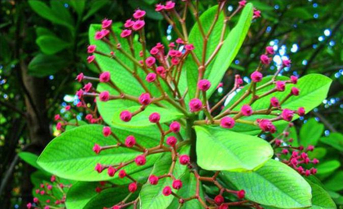 Denne planten er innfødt i tropene, eviggrønn. Også det vanlige navnet som synadenium bærer er "kjærlighetens tre". Hvorfor heter denne planten det? Det er ikke kjent nøyaktig, men det er ofte assosiert med formen på blomstene og fargen. De er litt som roser, mørkerøde, burgunderfarger har vært assosiert med kjærlighet i mange århundrer.