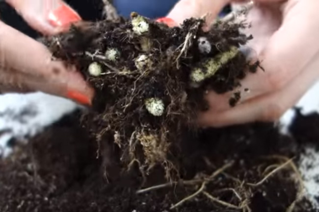 Før du planter en busk, er det nødvendig å fjerne jordstenglene fra potten, inspisere, fjerne skadede deler. Hvis jordstammen er veldig stor, er det ønskelig å dele den. Den gamle jorda er utarmet, du må forberede et nytt, friskt underlag. Drenering legges ut på bunnen av potten, jord helles med tilsetning av kull, et rhizom plantes og komprimeres godt.