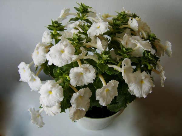- Frynset. En interessant achimenes blomst med en uvanlig frynset form av hvite eller blekrosa kronblader.
