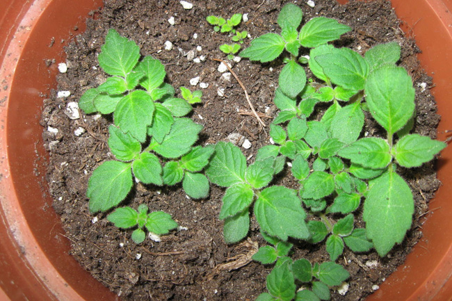- Frø. En møysommelig og langvarig prosess, det vanskeligste alternativet for å avle en kultur. Modne frø blir sådd i februar, blandet med sand. Det er ikke nødvendig å drysse med jord - kornene er veldig små. Overflaten sprayes med varmt vann, beholderen dekkes med en film. Frøplanter vises om 10-14 dager. Forsterkede unge skudd må transplanteres i separate potter.