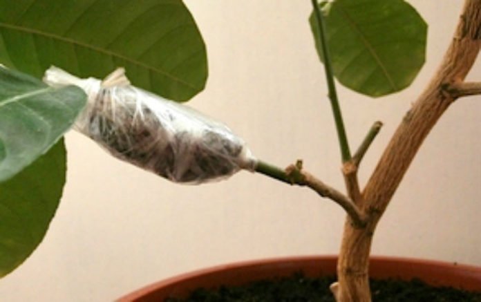 - Luftlag. Arbeidet skal gjøres om våren. Skuddstedet (10 cm) er løst fra løvverk. Det blir laget et grunt ringformet kutt. Pakk det rensede området med våt sphagnummose eller kokosfiber. Dekk med folie på toppen, fest. Etter 3 måneder transplanteres stilken med røtter i en separat beholder.