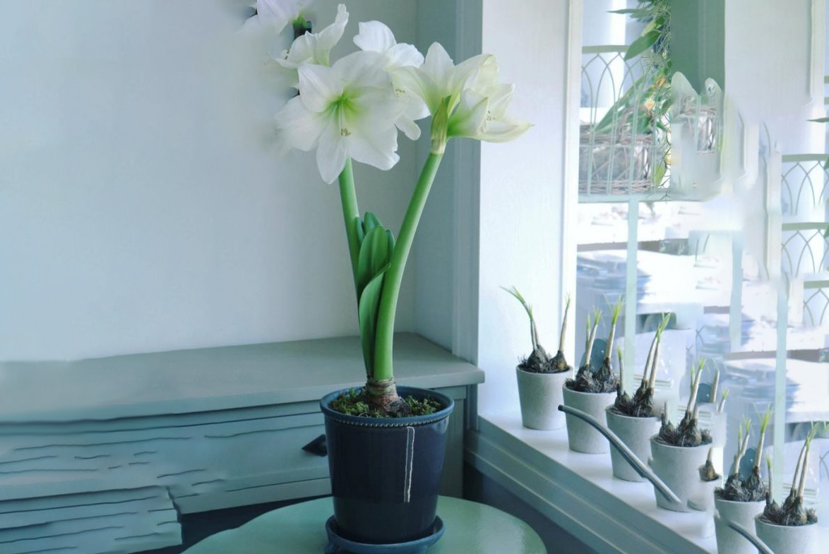 Etter to måneder vil planten gi en blomstrende pil. I land med kjølig klima dyrkes amaryllis utelukkende hjemme.