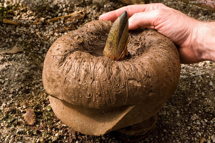 Blant 170 arter av tropiske og subtropiske planter av Aroid-familien (Araceae), skiller amorfophallus seg fra hverandre - "formløs fallus" hvis oversatt fra gresk. Det er en knollformet løvplante med lukten av råtten egg og fisk, men utstråler "rav" bare når den berøres.