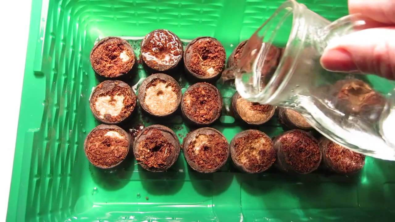- varmt vann helles i beholderen slik at den komprimerte torven begynner å svulme gradvis;
