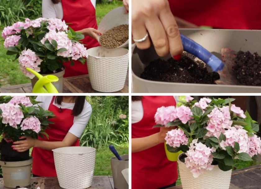 - Hvordan transplanterte hjemmelaget hortensia i en gryte etter kjøp