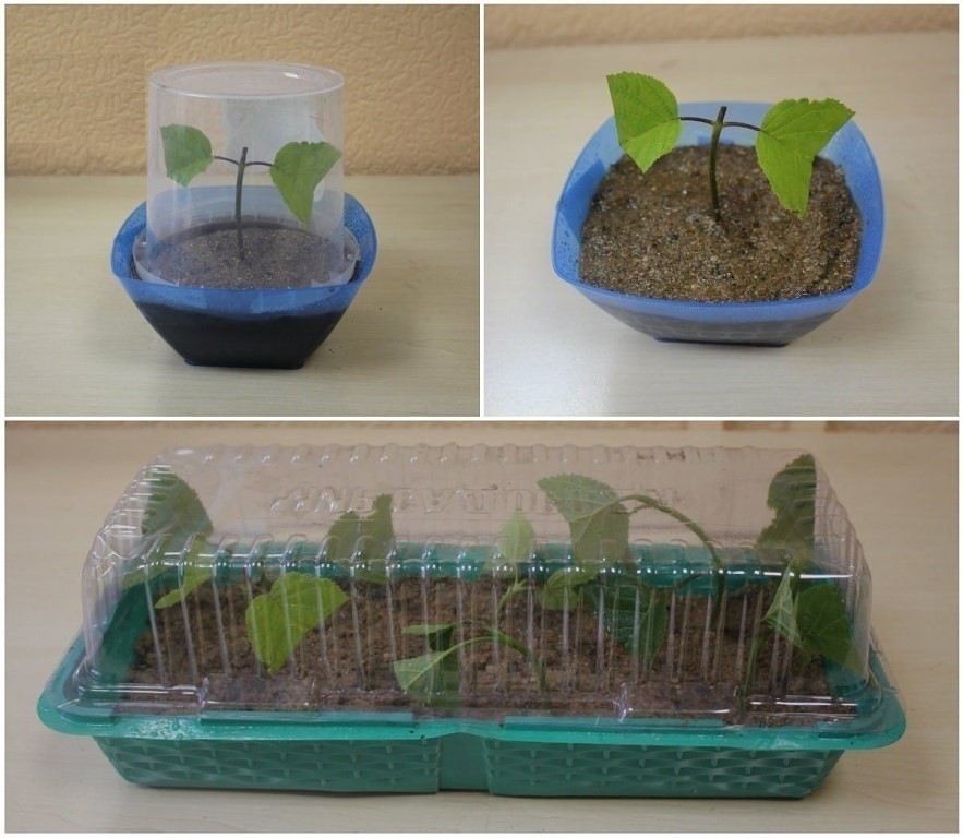 Arbeidsemnene plasseres i potter, dekket med glasskrukker. Ventilere hver dag. Belysning skal være tilgjengelig, men ikke i direkte sollys. Plantene vil være klare om 3-4 uker.