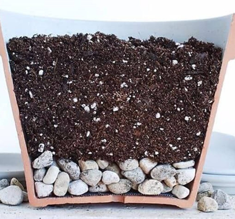 - Forbered en gryte med drenering og et lite jordlag.