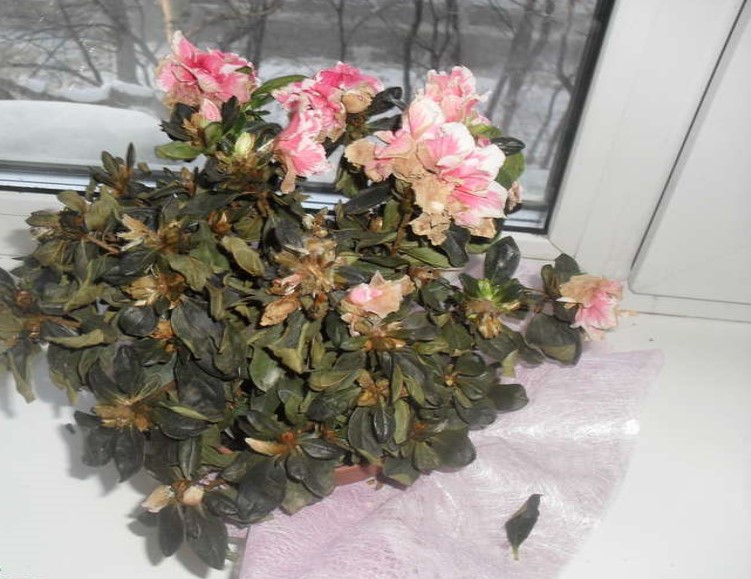 Azalea tørket opp, hvordan gjenopplive en hjemmebusk? Handlingsalgoritmen er som følger: