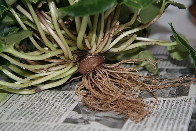 - Alle ødelagte luftdeler av syklamen fjernes. Sår behandles med et hvilket som helst desinfeksjonsmiddel.