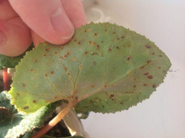Hvordan gjenopplive en syklamenplante som er blitt angrepet av skadedyr? Å spraye planten med en spesiell såpe som inneholder insektmidler, vil lett overvinne invasjonen av bladlus og forskjellige midd.Behandlingen utføres på overflaten av arket.
