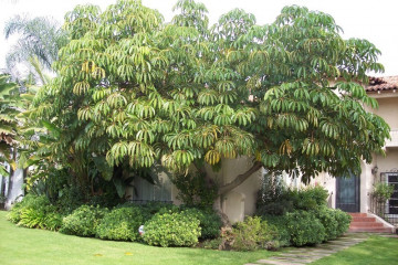 Plantehøyde - fra 90 til 120 cm. Store ovale blader er lette mot midten.