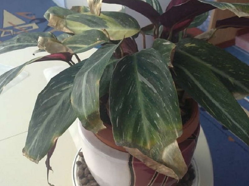 - Tørking av kantene på bladene. Dette problemet er forårsaket av veldig tørr luft, utilstrekkelig belysning, overflødig gjødsel. Riktig pleie anbefales.