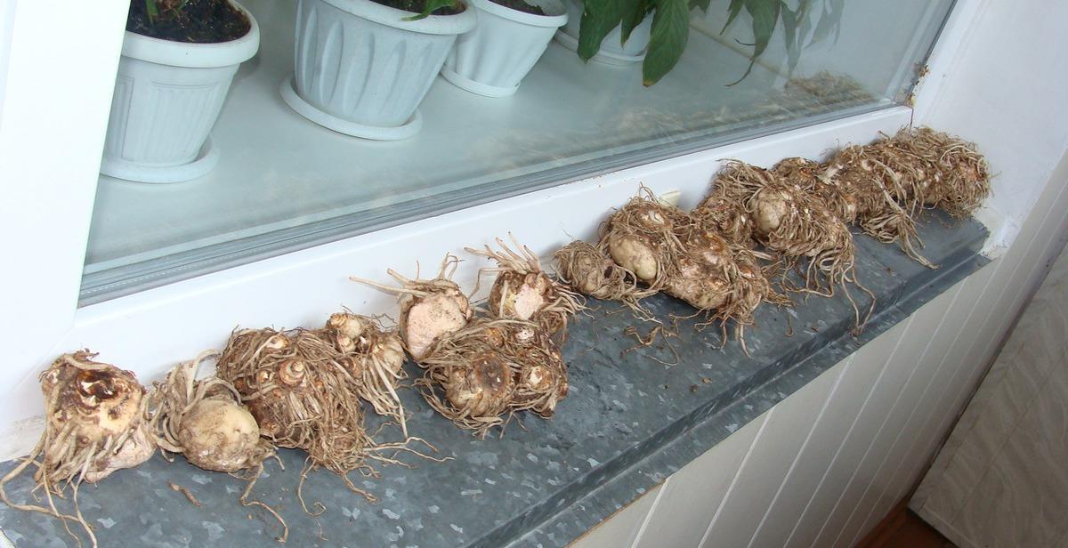 Først blir knollene igjen i flere måneder på et kjølig sted ved en temperatur på +3 .. + 5 grader - et enkelt kjøleskap er ganske passende.