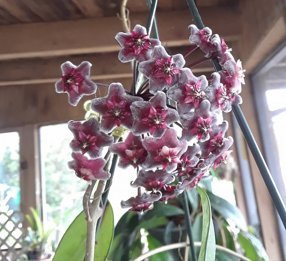 - Hoya Pubicalix sølvrosa (rosa sølv) - har broket brun-skarlagenrød løvverk og frodige blekrosa blomsterstand;