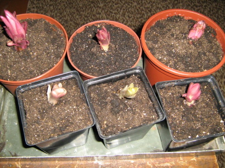 Hvis mulig kan elvesand helles over jorden. Beholderen med frø må dekkes med glass eller gjennomsiktig film. Etter at grønne blader ser ut, må plantene overføres til et lyst sted, for eksempel på en vinduskarm. Når de første bladene er synlige på pærene, må de sitte så forsiktig som mulig i separate potter.