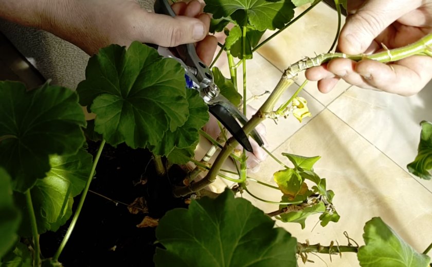 Riktig pleie vil fremme fremveksten av unge skudd og dannelsen av knopper. Hvis dette ikke gjøres, kan bladene på geranium bli gule og skuddene blir deformert.