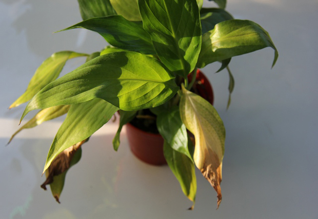 Det er uønsket å plassere en blomsterpotte ved siden av batterier og andre varmeovner om vinteren, siden spathiphyllum trenger en lav temperatur i den sovende perioden.