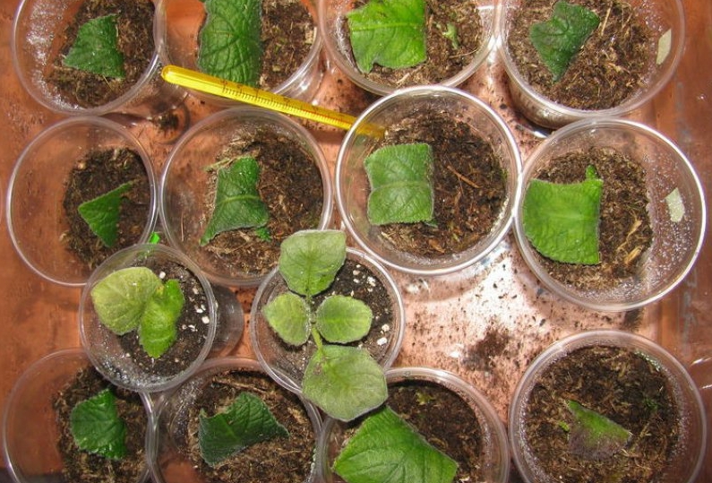- Bakken blir vannet, unge planter dekkes med en film og etterlates i et varmt rom.