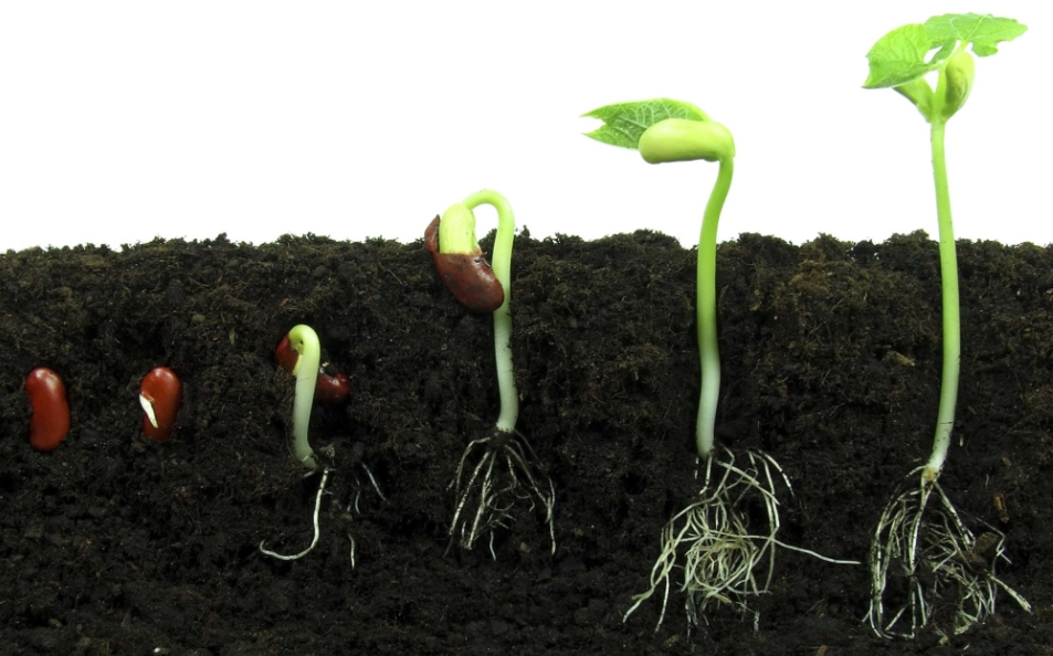 - på toppen er kornene drysset med jord eller sand med et lag på 3-4 cm;