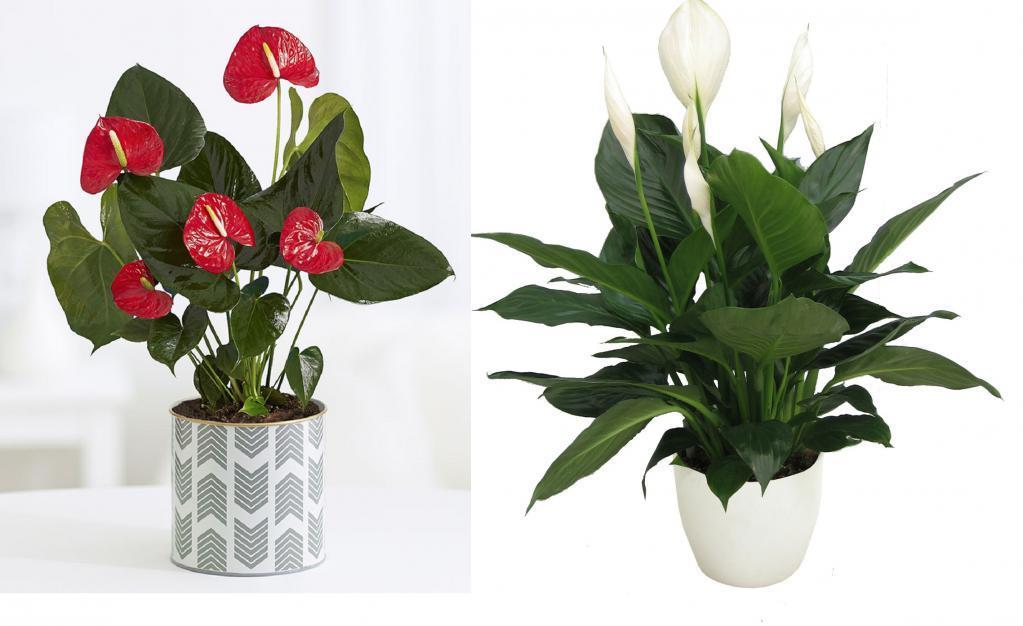 Planteforholdene er like, men spathiphyllum tåler lavere temperaturer. Røttene til spathiphyllum trenger litt plass i potten, den blomstrer først etter at den fyller all plassen, for anthurium trenger du så mye ledig plass som mulig.