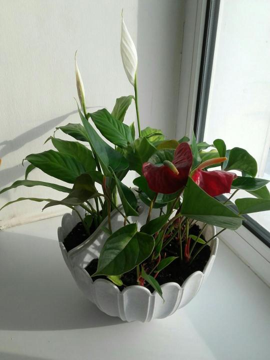 Om du skal plante spathiphyllum og anthurium i en gryte