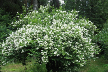 - Jasmin varianter av Maid of Orleans. Sorten kjennetegnes av sin raske veksthastighet og upretensiøsitet. For å oppnå rikelig blomstring og riktig form, må busken kuttes av. Blomster blir på planten i ikke mer enn en dag, så faller de av, og nye dannes ved siden av dem. Tverrsnittet av blomsten er 1,5 cm.