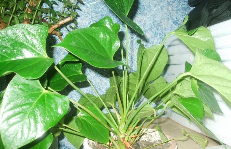 - Thrips.Blant skadedyrene på bladene av anthurium utmerker man seg trekker. De er plassert på baksiden av platene og skiller ut en mørk, giftig saft. Ødelagt av Aktellik.